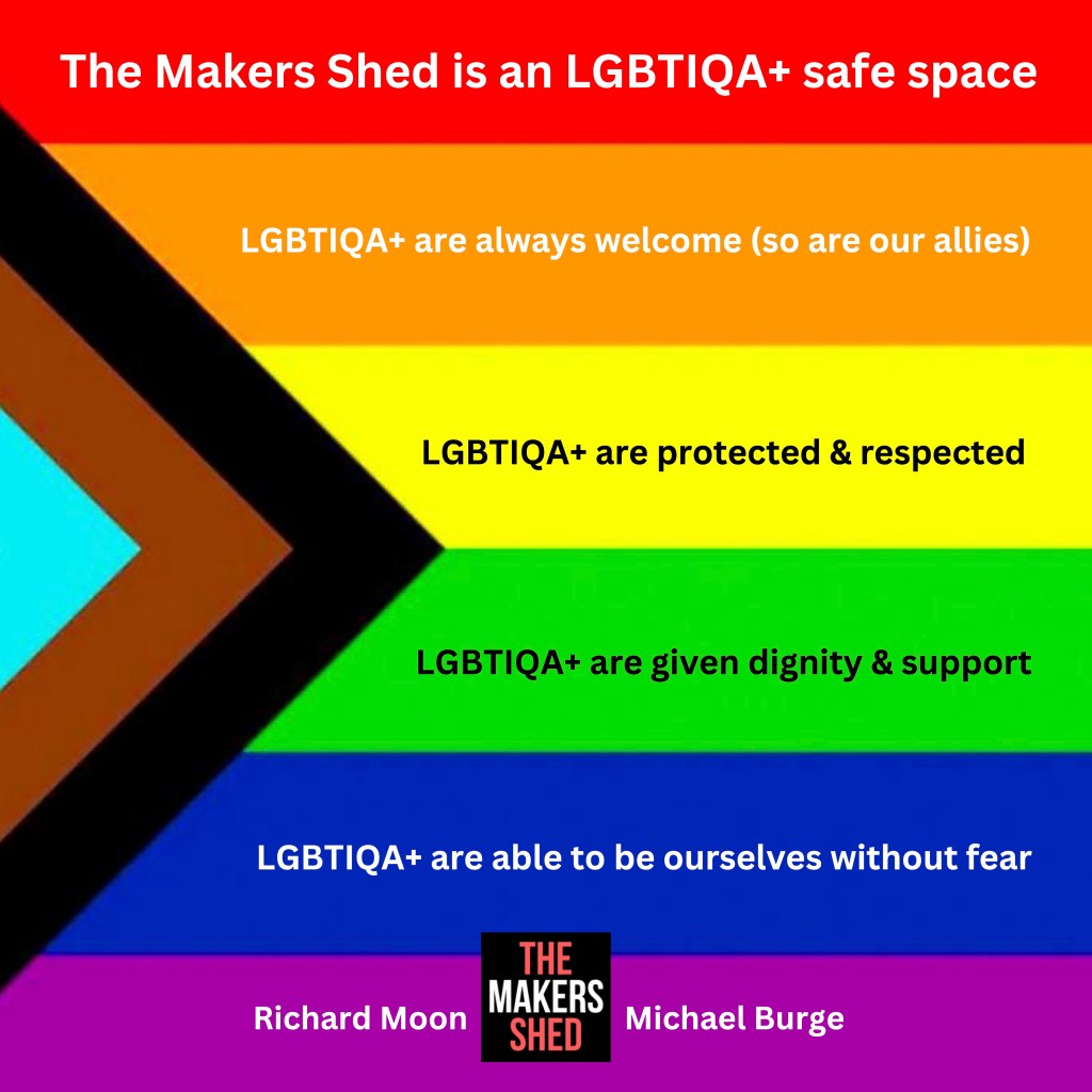 The Makers Shed welcomes and supports First Nations, Migrant, LGBTIQA+ visitors and locals. We are part of the international Safe Space Alliance.